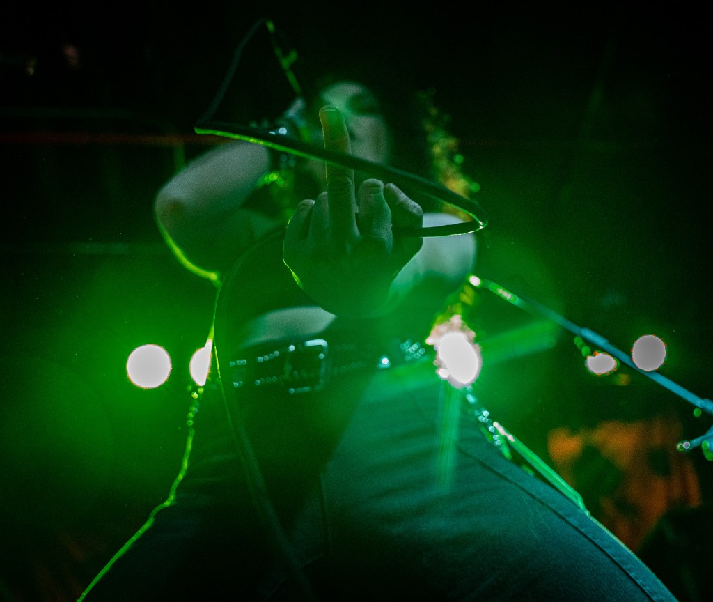 The powerful sound of Vitriol was ideal for the occasion. Kyle Rasmussen’s guitar work, which was the highlight of the performance, held their precise speed and snappy bass lines together. Adam and Kyle’s effortless coordination allows them to seamlessly navigate through the song’s numerous tempo changes without missing a single beat. Adam’s use of bass fret tapping adds depth to the rhythm section, creating a visceral and powerful sound that perfectly complements the dissonance of the music. The intricate note motions in the bridge riff leading up to the solo are a testament to the band’s mastery of harsh melody and their ability to create something truly unique in the realm of Extreme Music. Kyle’s solo style is a true marvel to behold, drawing inspiration from a wide array of guitarists and resulting in a sound that defies categorization. His use of tremolo picking, massive note bends, and chaotic tapping techniques creates a complex and vibrant sonic tapestry that constantly pushes the boundaries of what is possible in Extreme Death Metal. The interplay between Kyle and Adam is a thing of beauty, with each musician pushing the other to greater heights and creating a sense of timelessness that is nothing short of magical.