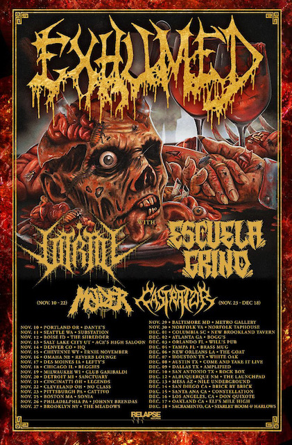 I recently had the pleasure of seeing Castrator, Escuela Grind, Vitriol, and Exhumed perform at Meadows, Brooklyn. It was a night that left me speechless. There was an electric vibe in the room, and the intensity of each band’s performance eliminated any possibility of disappointment.